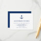 Nautical wedding accommodations enclosure card with a simple and modern design featuring a navy blue anchor over a white background. These elegant enclosure cards are perfect for a summer coastal themed wedding by the beach.