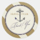 This stylish wedding Thank You sticker design by The Spotted Olive™ features a lightly weathered bold gold & cream striped background, a vintage image of an anchor and the word "Thank You" typeset in an elegant script typeface. Please note the background image is slightly weathered and blemishes and imperfections are part of the charm of this design. Easily personalise this invitation by clicking the "customise it" button. Copyright © 2014 The Spotted Olive. All Rights Reserved.