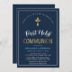 Elegant Navy And Gold First Holy Communion Invitation