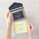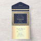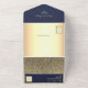 Make a bold statement with this navy blue and faux gold glitter seal and send wedding invitation—an envelope-free design that’s modern, sophisticated, and ultra-convenient. With a formal palette perfect for winter weddings, luxury celebrations, or black-tie events, this stylish all-in-one features built-in RSVP and guest details, no extra pieces needed.