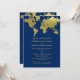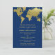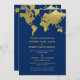 Elegant Navy and Gold World Map Wedding Invitation