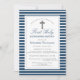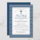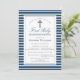 Elegant Navy and White Stripes First Communion Invitation