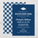 Celebrate in laid-back style with this navy graduation party invitation featuring a graduation cap icon and bold “Backyard BBQ” rustic lettering. Perfect for an open house, cookout, or summer party. Personalise the graduate name, date, time, location, and RSVP. Back features a coordinating navy gingham pattern.