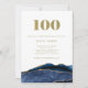 Elegant Navy Blue Agate and Gold | 100th Birthday Invitation