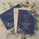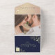 Elegant Navy Blue and Gold Floral Wedding All In One Invitation