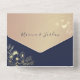 Make a statement with this elegant navy blue and faux gold floral all-in-one wedding invitation. This folded design includes a built-in RSVP section, detailed wedding information, and an integrated envelope — no assembly required. The romantic botanical illustration and rich navy palette make it ideal for formal, evening, or luxury weddings.