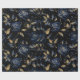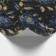 Elegant Navy Blue and Gold Rose Floral Pattern Wrapping Paper