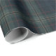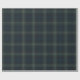 Modern Christmas wrapping paper featuring a timeless design with a muted navy blue and green plaid pattern.