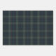 Modern Christmas wrapping paper sheets featuring a timeless design with a muted navy blue and green plaid pattern.