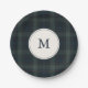 Elegant Navy Blue and Green Plaid Monogram Paper Plate