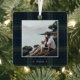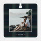 Modern Christmas ornament featuring a timeless design with your favourite photos over a muted navy blue and green plaid background along with the year.