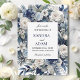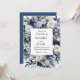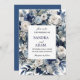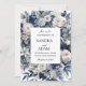 This stunning design features a rich navy blue background adorned with delicate ivory florals and accented with shimmering silver details. Perfect for a sophisticated and timeless wedding, this invitation captures the essence of elegance and refinement, setting the perfect tone for your special day. Ideal for couples seeking a classic and luxurious invitation that exudes charm and grace.