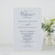 Elegant silver with navy blue Wedding program with beautiful modern handwritten calligraphy details. Front with wedding ceremony details, back with wedding party names and thank you message for your guests. Add your details using the template text boxes provided and if needed, you may select "Edit using the design tool" (with the button located at the end of the template text boxes) and make changes to your text's positioning, size, or even style to fit your details best. This design in a silver colour background and text in a navy blue tone.
