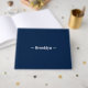 Elegant navy blue and white custom name text guest book