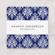 Elegant Navy Blue and White Damask Pattern Square Business Card
