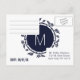 Elegant, modern, and chic white and trendy navy blue floral hand drawn pattern, RSVP Postcards. This classic and sophisticated design is perfect for any stylish and trendy event, including weddings and everyday occasions. Personalise with your own message on the front as well as a customised monogram initial on the back. All photo print design.