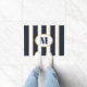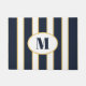 A simple design of navy blue, white and gold stripes with a gold rimmed monogram.