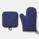 Elegant navy blue and white tiny polka dot pattern oven mitt & pot holder set