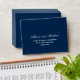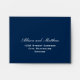 Custom A2 wedding response card envelopes feature formal style white address text (can be customised) on a navy blue background.