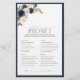 Modern, elegant bridal shower game "What's on Your Phone" featuring a bouquet of navy blue and blush pink flowers, bordered in navy blue. Personalise your questions in soft off-black, accented with beautiful modern hand lettered calligraphy. Part of a co-ordinated suite. View suite here: https://www.zazzle.com/collections/navy_blue_blush_floral_watercolor_bridal_shower-119055669272624939 Contact designer for matching products. Copyright Anastasia Surridge for Elegant Invites, all rights reserved.