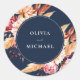 Elegant Navy Blue Boho Chic Floral Wedding Classic Round Sticker