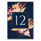 Elegant Navy Blue Boho Floral Wedding Table Number