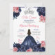 Elegant Navy Blue Butterfly Pink Floral Mis Quince Invitation