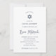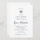 This simple and elegant design features navy blue calligraphy and modern matching text on a crisp white background. A matching Star of David makes this perfect for your religious Bar Mitzvah.
