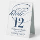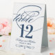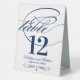Each table number card must be customised via Personalise it" and individually added to the shopping cart. Elegant navy blue and white design includes a flourished monogram and calligraphy accents on the front and back sides of the card (two-sided design).