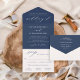 Elegant Navy Blue Calligraphy Script Wedding All In One Invitation