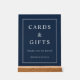 Elegant Navy Blue Cards And Gifts Wedding Acrylic Sign.