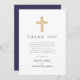 Elegant Navy Blue Cross Boy Baptism Thank You Card