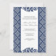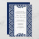 This classic and elegant wedding invitation is created in a navy blue damask. This wedding invitation is perfect for a formal wedding. Matching save the date cards, response, reception, direction and thank you cards are also available. Design by Mujka