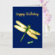 Elegant Navy Blue Dragonfly Foil Birthday Card