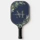 Elegant Navy Blue Eucalyptus Botanical Monogram Pickleball Paddle