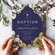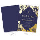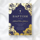 Elegant Navy Blue Floral Boy Baptism Gold Foil Invitation.