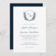 Elegant Navy Blue Floral Crest Monogram Wedding Invitation