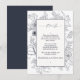 Elegant Navy Blue Floral Line Art Wedding Details Enclosure Card