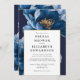 This elegant navy blue and gold floral bridal shower invitation can be personalised with your information in modern typography and your registry details on the reverse. Designed by Thisisnotme©