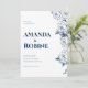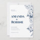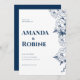 This elegant navy blue and white wedding invitation features a clean, minimalist layout with hand-drawn floral line art on the side. A perfect choice for couples who love simplicity with a touch of sophistication.