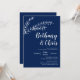 Elegant Navy Blue Foliage Minimalist Wedding Invitation
