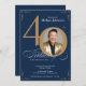 Elegant Navy Blue Gold 40th Birthday Invitation