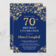 Elegant Navy Blue & Gold 70th Birthday Invitation