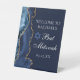 Elegant Navy Blue Gold Agate Bat Mitzvah Party Pedestal Sign