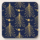 Elegant Navy Blue Gold Christmas Tree Star Pattern Coaster