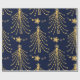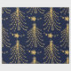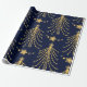 Elegant Navy Blue Gold Christmas Tree Star Pattern Wrapping Paper