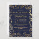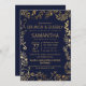 Elegant Navy Blue Gold Floral Brunch Bubbly Invitation
