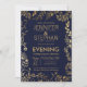 Elegant, modern, and chic faux gold and trendy navy blue floral hand drawn pattern, evening wedding reception invitations. This classic and sophisticated design is perfect for the trendy and stylish marrying couple. Personalise with your own message on the front as well as a customised monogram initial on the back. All photo print design.