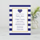 Elegant Navy Blue Gold Heart Nautical Wedding Invitation