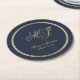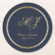 Elegant Navy Blue Gold Monogram Script Wedding Round Paper Coaster